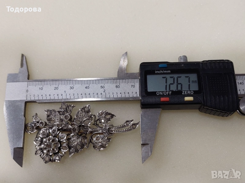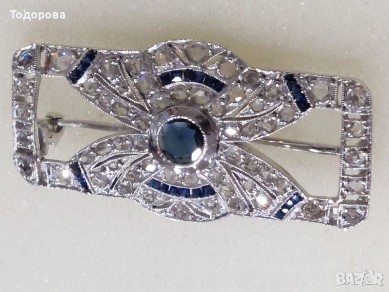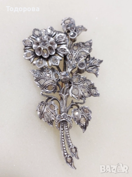 с инкрустирани шест броя австралийски черни опали с размер 8 мм всеки. За продажба тази прекрасна стара брошка,артдеко от началото на миналия век.Материал- родирано среро,инкрустирани шейсет диаманта и 25 натурални сапфира,най големият в центъра на брошката е 0.5 карата.На живо е още по изящна.Мога да ви изпращам клипове на вайбър,за да придобиете по добра представа за това бижу.1000 евро. Показвам и предлагам за продажба тази прекрасна стара викторианска брошка с инкрустирани 50 диаманта.Материал- злато и сребро.най големият диамант е с размер от 5.5 милиметра.1500 евро.Брошката с опалите е продадена.