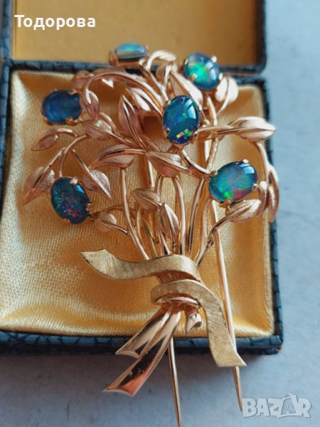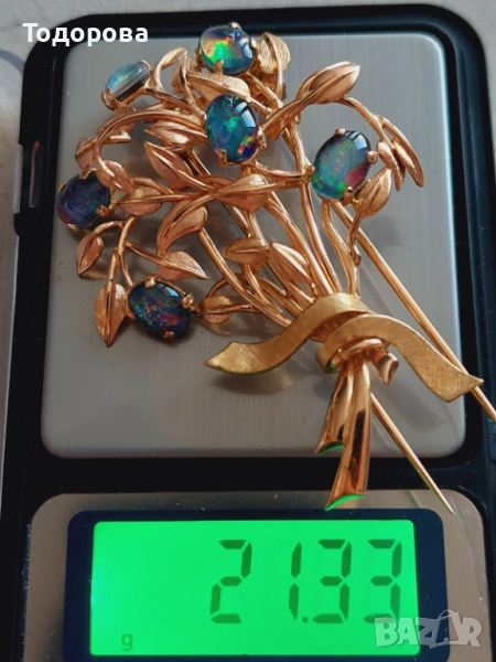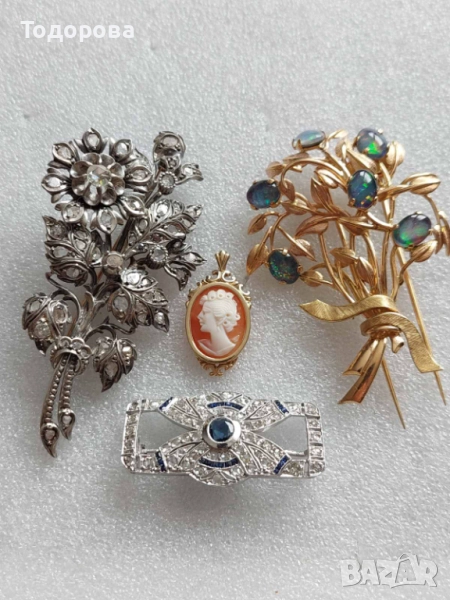 Лот от 3 брошки,златна 18 к. брошка с черни опали,и две с диаманти → Обява 52085157