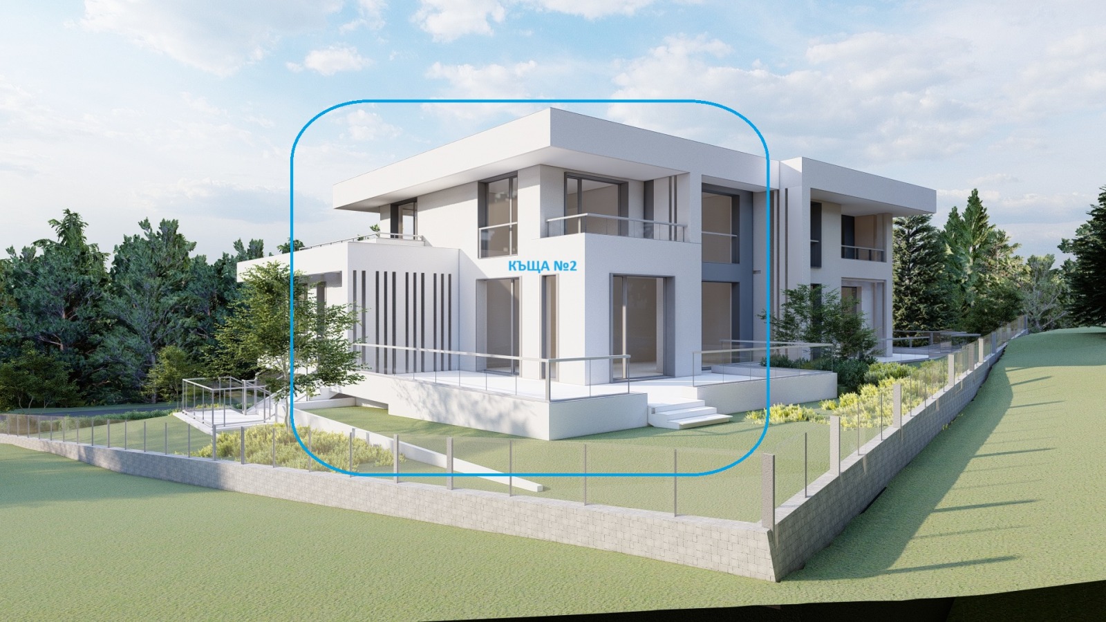 Къщата е с обща площ 284,45 кв.м., застроена площ 159,84 кв.м. Извън застроената площ има прилежащи 62 кв.м. тераса, двор 101,33 кв.м., както и склад + техническо помещения 65,85 кв.м. В цената e включено 1 брой открито паркомясто.