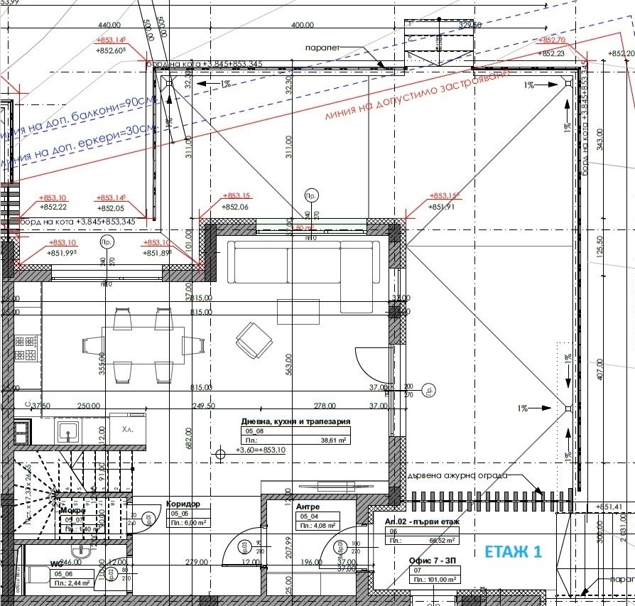 - спалня - 14,78 кв.м. с дрешник към нея 3,68 кв.м. и баня с тоалетна 4,31 кв.м.