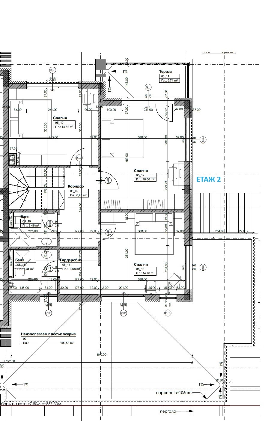 - спалня - 18,66 кв.м. с тераса към нея 5,71 кв.м.