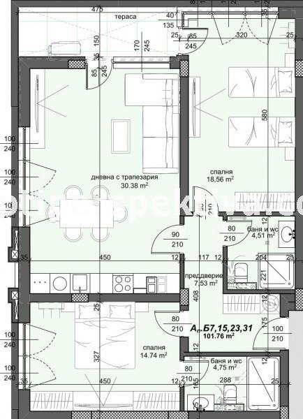 реф.16357 Предлагаме Ви тристаен апартамент на СРЕДЕН ЕТАЖ разположен в новострояща се ЛУКСОЗНА СГРАДА в напреднал строеж !!! Жилището се състои от просторен и светъл хол с кухненски бокс, две спални, тераса, две бани с тоалетни, входно антре. Сградата се строи от утвърден строител с множество готови обекти , като ще бъде завършена съгласно всички европейски стандарти при технологията и качеството на строителство: стилна фасада, луксозни общи части. Постигнати високи нива на енергийна ефективност!!! Сградата е с НИСЪК ПРОЦЕНТ ОБЩИ ЧАСТИ, хидро и топлоизолации, блиндирани входни врати, луксозно завършване на общите части ! Към имота може да бъде закупено ПАРКОМЯСТО на отделна цена!!! АГЕНЦИЯТА СЪДЕЙСТВА С ВСИЧКО НЕОБХОДИМО ДО ПРИКЛЮЧВАНЕ НА СДЕЛКАТА!!!