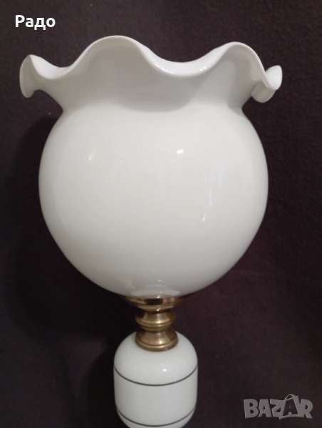 Красива старинна лампа с бял стъклен абажур → Обява 52085417