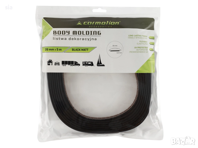 Тази гъвкава, матово черна декоративна лента е устойчива на атмосферни влияния. Монтажът е много лесен. Тя е със здрава двустранна лента на гърба.
