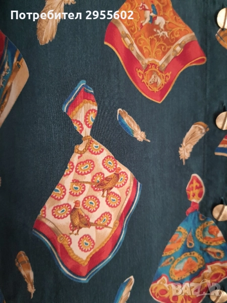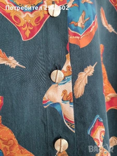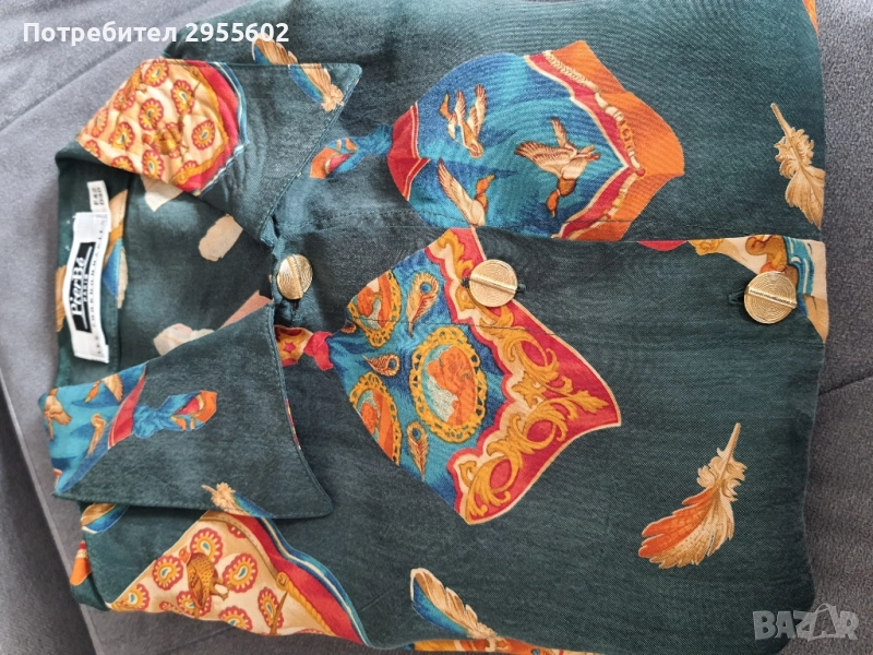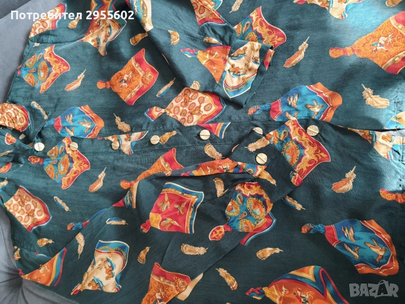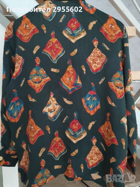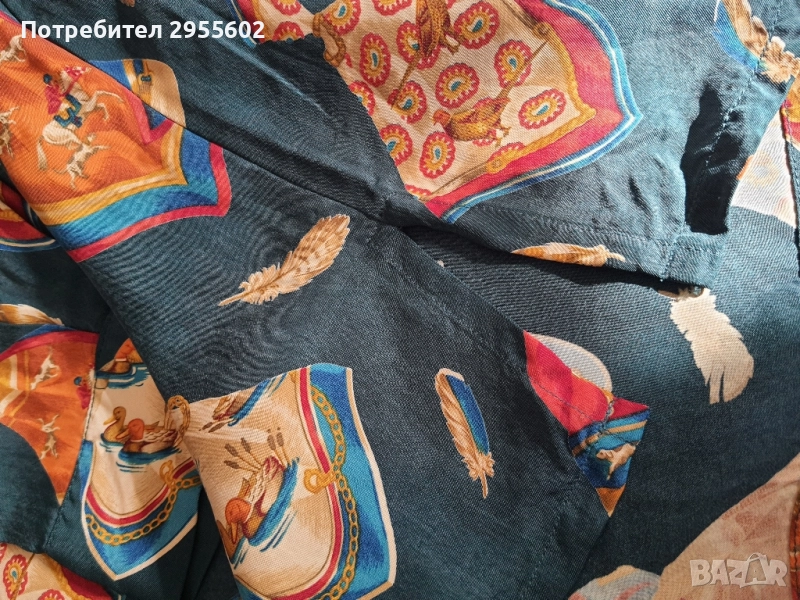 Дамска риза в стил Хермес с мултицветен десен. Идеална за стилни и елегантни визии.