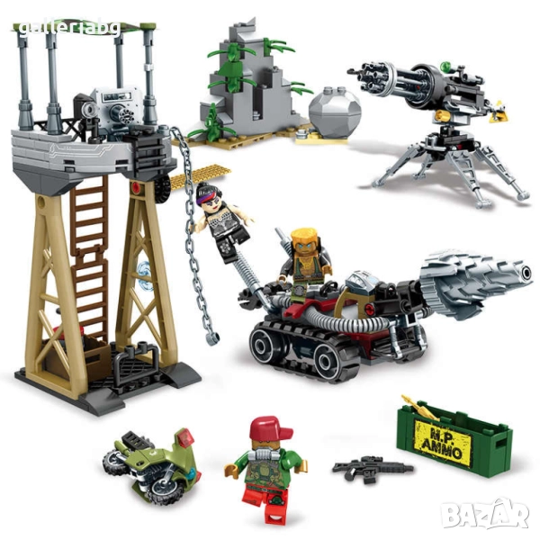 Екшън и стратегия в едно! С конструктора Black Gold можеш да изградиш военна база, наблюдателна кула, тежко оръжие и бойни машини – всичко необходимо за защита на ресурсите. Комплектът включва 314 части и 3 фигурки, готови за битка.
