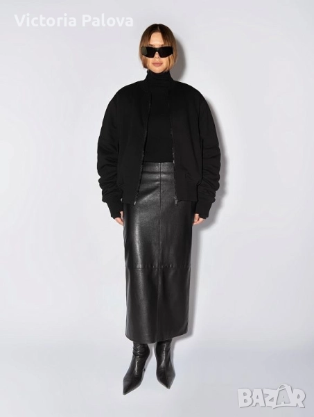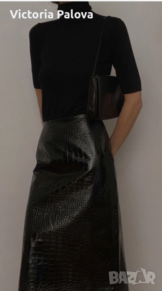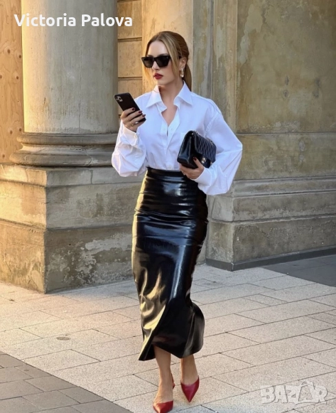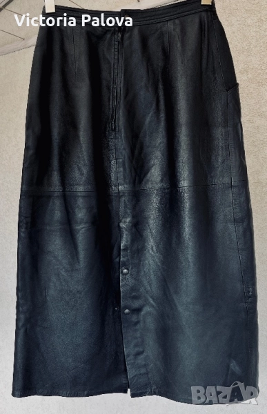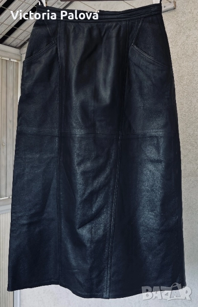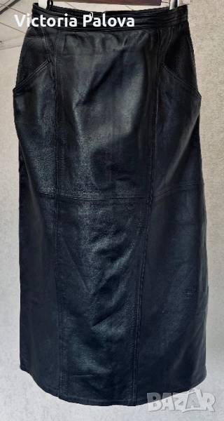 Отлично състояние, изработена от 100% гладка естествена кожа с подплата. Копчетата са японски, HASI HATO, които добавят допълнително към качеството на изделието. Идеална е за стилен и елегантен вид, подходяща за различни сезони. Талия - 38см, ханш - 53см, дължина - 80см, отзад висок шлиц с тик- так копчета - 38см, цип - 23см.