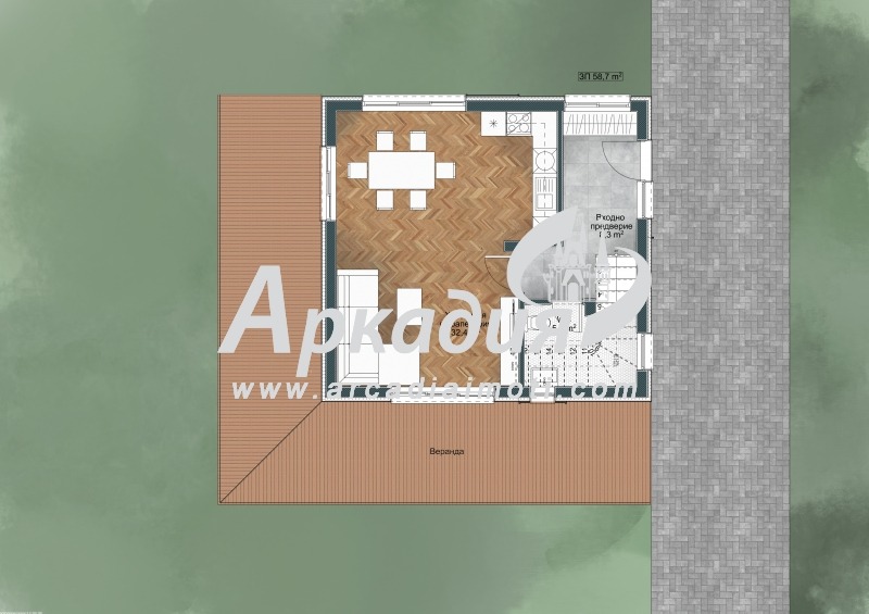✔ Първи етаж широк, светъл хол, в който семейството ви ще създаде най-прекрасните спомени, входно антре, тоалетна и склад, веранда и самостоятелен двор.