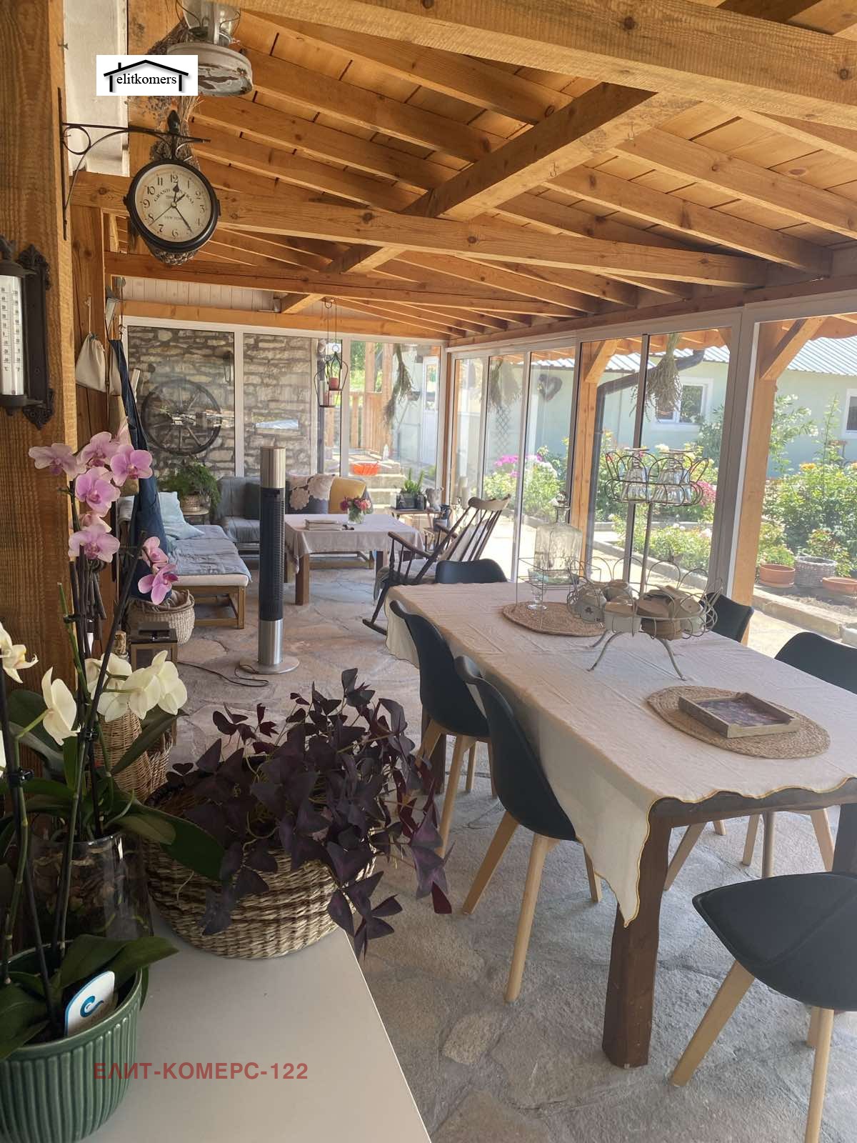 Къщата разполага с допълнителни санирани постройки - 3 големи стаи, гараж, навеси за дърва.