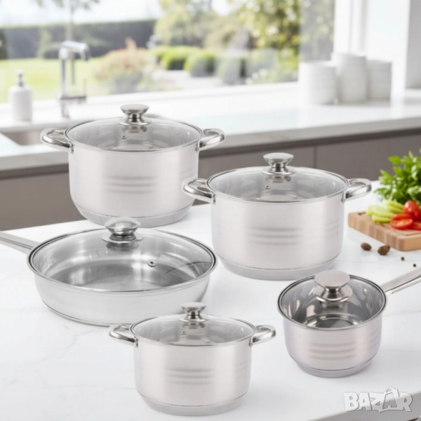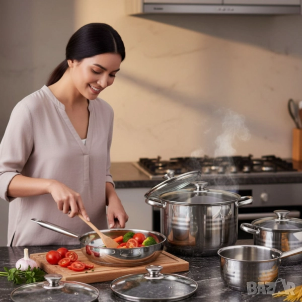 Комплект съдове от неръждаема стомана – 12 части - Готви като професионалист у дома