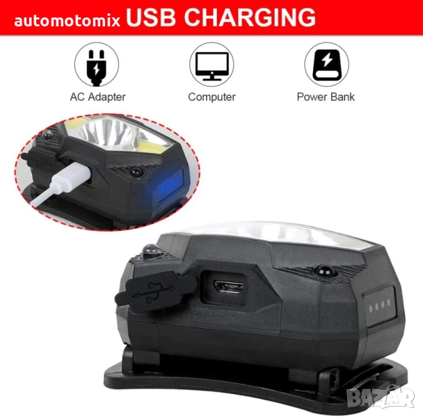 Челник, Със сензор за движение, Фенер за глава, USB кабел - 201