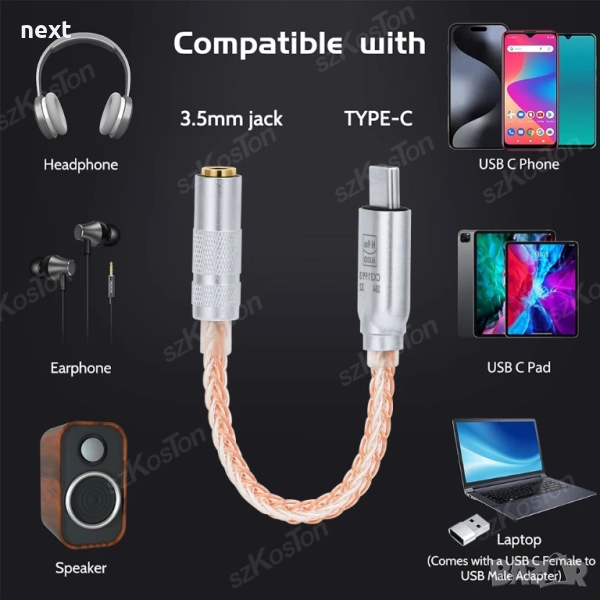 адаптерът за слушалки Type-C предлага честота на семплиране до