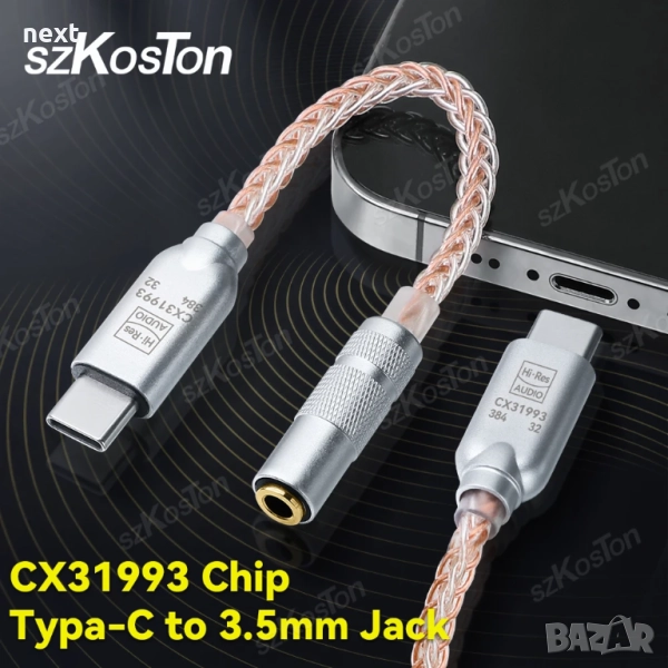 - Цифров ДАК DAC / усилвател CX31993 DAC HiFi Type C към 3,5