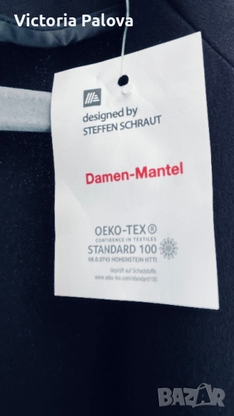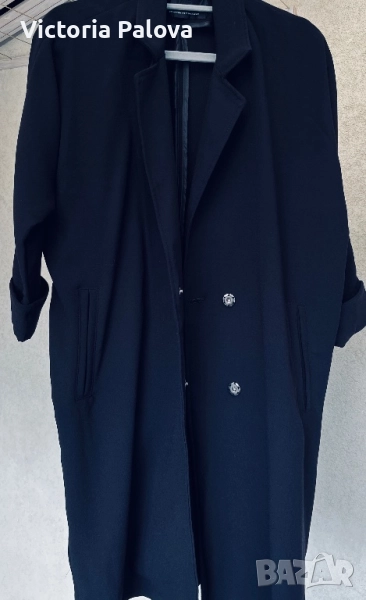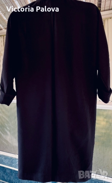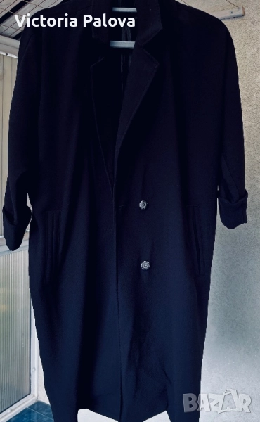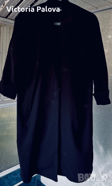 Елегантно дамско палто 100% полиестер без подплата, OEKO - TEX сертифицирано Standart 100, без вредни вещества . Кройка кокон със скъсен ръкав с маншет, без шев по рамото, вътрешни джобове, закопчава се с две скрити копчета,стилно и елегантно, перфектно за ежедневен модерен лукс. ГО - 60см, ханш - 52см, дължина - 90см.