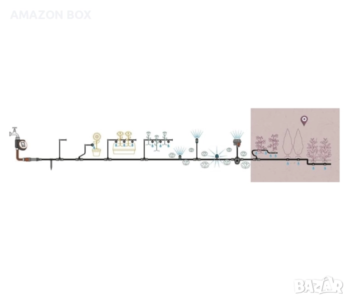Може да се разшири за до 15 саксийни растения и да се управлява автоматично с помощта на контролер за напояване.