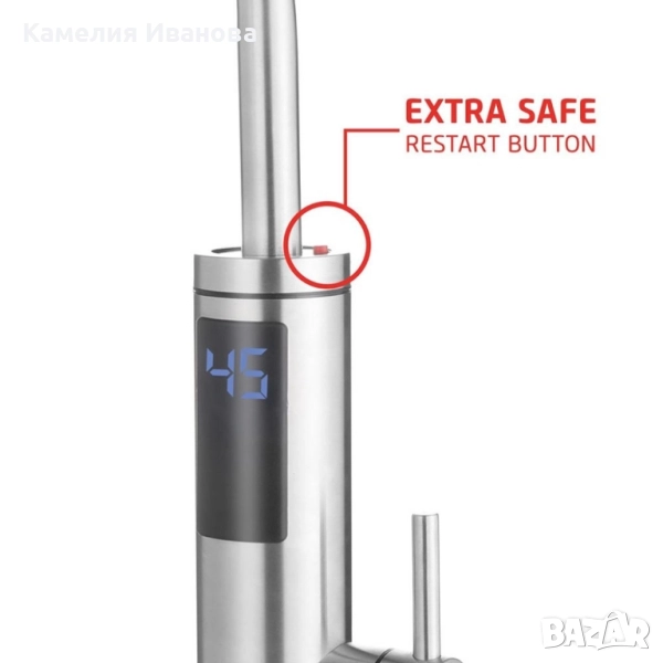 Незабавно използване; Удобно и практично решение за всеки дом; Бързо загряване и енергоспестяване; Наличие на топла вода за секунди (температура 30-60°C); Дизайн за работа с ниско налягане на водата (0.04 Mpa-0.6 Mpa); Да се монтира само в помещения с температура на въздуха над 0°C; За монтаж в мрежа снабдена с дефектнотокова защита; Клас на защита IPX4; Гъвкав soft touch силиконов струйник; Фиксиран струйник от неръждаема стомана LED дисплей; Монтаж на плот; Тяло от неръждаема стомана; Рестарт бутон; Защита против прегряване; 3000-3600W, 220-240V/ 50-60 Hz.