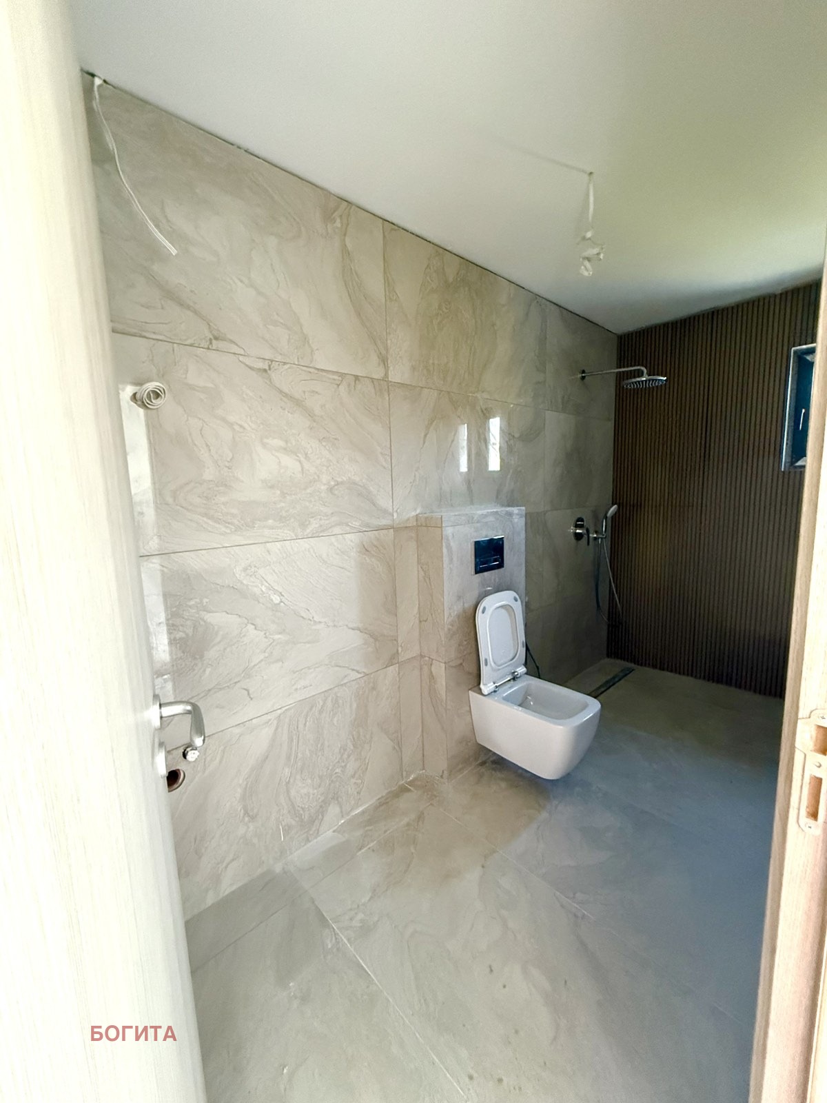 Има вече поставен паркет в стаите, вече и с поставени интериорни красиви врати.Остава много малко за довършване и поставяне на мебелите .