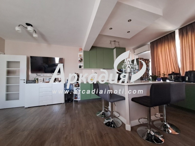 ОФЕРТА-25332;Предлагаме Ви за продажба изключително уютен и функционален ТРИСТАЕН АПАРТАМЕНТ+ ДВЕ ПАРКОМЕСТА в ЦЕНАТА в района на бул.Александър Стамболийски. Разположен е на 9-ти етаж от 11- етажена кооперация. Разположението на стаите е следното - голям и светъл хол с трапезария и кухня, две спални, баня с тоалетна,втора тоалетна, перално,входно антре, две тераси. Жилището е с ПВЦ дограма, ЕЛ и ВИК инсталаций, подови настилки - гранитогрес и паркет, интериорни вътрешни врати, входна блиндирана врата. Терасата е с гранитогрес. ИМОТЪТ СЕ ПРОДАВА ОБЗАВЕДЕН С ВСИЧКО НЕОБХОДИМО ЗА НАНАСЯНЕ ВЕДНАГА: кухня с електроуреди, климатик, спални комплекти, холова гарнитура, ТВ-секция, трапезарна маса и др.. Към имота има прилежащо избено помещение от 6кв. м. Входът е изключително поддържан с видео наблюдение и контролиран достъп. За огледи: Атанас Копарански - 0879056451 Вижте още наши предложения www.arcadiaimoti.com