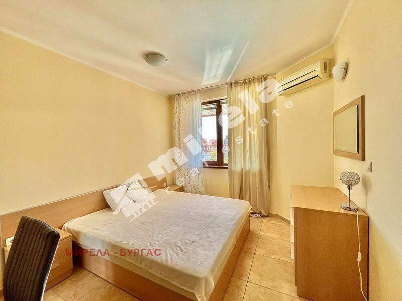 Имотът има жилищен статут; Сградата има асансьор; Продава се с обзавеждане, което подлежи на уточнение; Има физическа охрана; ЕТАП НА СТРОИТЕЛСТВО: разрешение за ползване (Акт 16); ОТОПЛЕНИЕ: климатик; Има 2 балкона/тераси; Ремонтиран; Има такса поддръжка; Непреходен; Целогодишно ползване; ВИД СТРОИТЕЛСТВО: тухла; ГОДИНА НА СТРОИТЕЛСТВО: 2010 г.; ИЗЛОЖЕНИЕ: гледка към басейна; СПАЛНИ: 3; БАНИ: 2; ДОГРАМА: PVC
