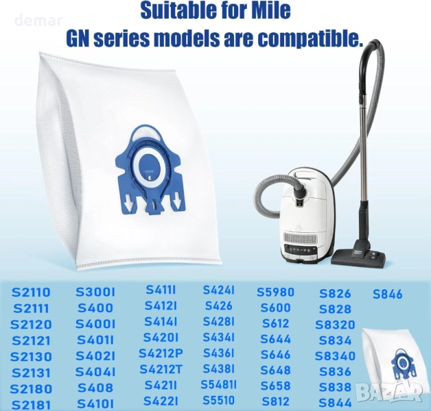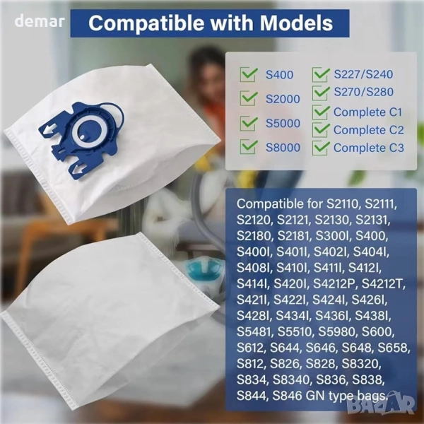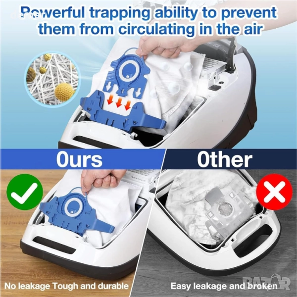 Тези резервни торби за прахосмукачки се отличават със здрав дизайн на уплътнение, който предотвратява течове и задържа праха сигурно, осигурявайки по-чист въздух по време на употреба. Изработени от висококачествени многослойни нетъкани материали, те предлагат петслойна филтрация, която улавя до 99,97% от праха, козината на домашни любимци и алергените за по-здравословна домашна среда. Торбите пасват идеално на широка гама от модели прахосмукачки Miele с контейнер, като производителността и качеството на уплътнение съответстват на оригиналите. Лесен за инсталиране и издръжлив, комплектът включва 20 торби за прах, 10 филтъра за мотор, 10 филтъра за пречиствател на въздух и 2 четки за почистване, осигурявайки отлична стойност и дълготрайна употреба.