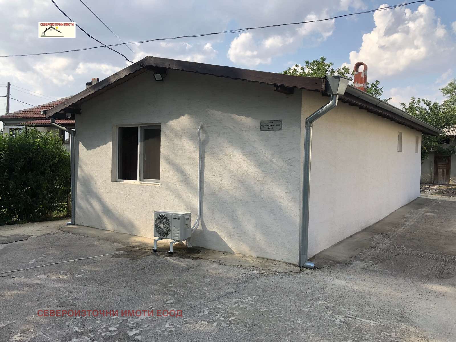 ID. 4458 Севвероизточни имоти Ви предлага за продажба полуобзаведена къща / дървена къща или сглобяема конструкция/ от 2024г със застроена площ от 58квм. на един етаж. Състои се от: всекидневна с кухненски бокс, две спални , баня с тоалтна и перално помещение. Ток ,вода с партиди, мръсен канал на улицата с оставено разклонение за присъединяване и изцяло по асфалтов път.В двора има и масивна стопанска постройка с площ от 34квм.а дворното място е с площ от 350квм. Намира се в близост до центъра, а населеното място е с всички необходими учреждения,банки, магазини аптеки, детски градини и др. за спокоен живот. Изрядни документи за сделка!