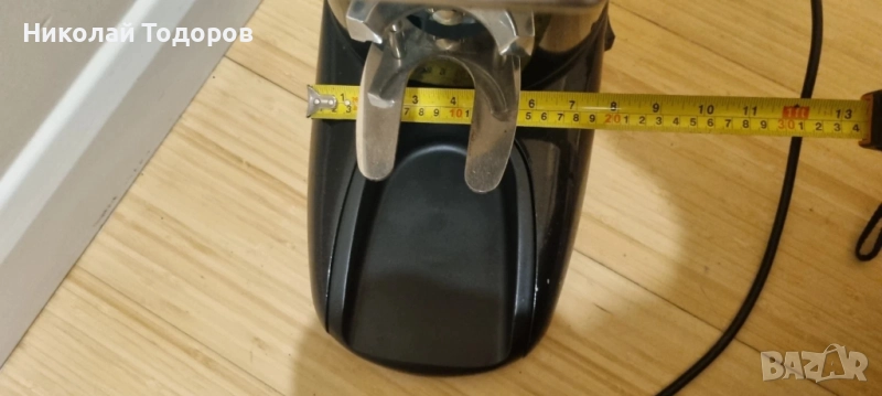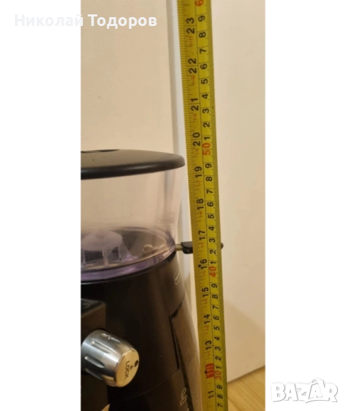 Машината е тип "on demand", с 68мм, големи конусни ножове (с тегло 531гр), задвижвани посредством метална планетарна трансмисия с ниски обороти, 330 об/мин. Това позволява по-равномерно смилане и намалява отделянето на топлина (запазва аромата) при мелене на по-големи количества кафе. С микрометрично (много фино) регулиране на едрината на смилане и индикация на дисплея. Мощен асинхронен (безчетков) мотор 800W с вентилатор за допълнително охлаждане, който се включва автоматично в зависимост от температурата. Предназначена за високо натоварване с производителност 4,4-4,6 гр/сек за еспресо. Ако се мели по-едро са над 5 гр/сек. Тежка и стабилна машина (към 16-17кг) която може да се ползва дори и в домашни условия. Много по-надежни мотор, трансмисия и електроника от всяка домашна китайска машина. Задръжката на кафе със сингъл дозинг кит за Eureka Mignon (пасва идеално) е под 1гр. При изцяло почистена мелачка, изсипани вътре 20 гр зърна, смелено кафе - 19,2-19.6гр, след това като се запълнят кухините са 20гр зърна и 20гр смелено кафе. Тази машина няма почти никаква статика или бучки при меленето на кафе дори и когато се мели супер фино (почти като за турско), вероятно заради ниските обороти и липсата на пластмасови детайли по пътя на смляното кафе. Височината и е около 50см (с бункера) и се събира под шкафове. Бункерът за кафе е малкия вариант (0,5-0,6кг). Напълно изрядна, без технически забележки, с чисто нови италиански ножове (поръчани от coffeesection.com, 80$). Оригиналните са налични и според електронния брояч (тотал дози - не се занулява) са на малко над 25 000 дози, което е към 400кг смляно кафе. По каталожни данни животът им е около 1600кг така, че и в тях има още "доста хляб" . Бъдещият купуващ ще получи оригиналните и новите монтирани. Козметично машината има няколко съвсем леки драскотини по боята в долната част и частична пукнатина (във вид на драскотина) в горната част на бункера за кафе, която не пречи на нормалната работа.