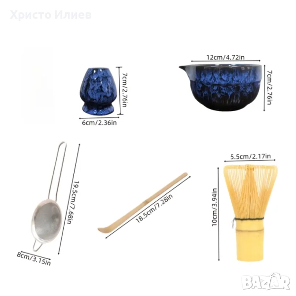 - Пълен комплект: Традиционният комплект за чай матча включва керамична купа, бамбукова бъркалка, държач за бъркалка, мерителна лъжичка и цедка за чай за автентично приготвяне
