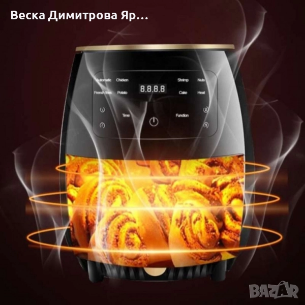 Компактен и ефективен кухненски уред, предназначен за домашно готвене. С голям капацитет от 4,5 литра. Уреда използва циркулация на горещ въздух и малко количество масло за готвене и хрупкане на широка гама от храни, включително пържени картофи, пилешки крехки и зеленчуци. Той има мощен нагревателен елемент с мощност 1400 вата и множество настройки за готвене, което ви позволява да персонализирате процеса на готвене, за да отговаря на вашите нужди. Фритюрника използва горещ въздух, за да приготви любимите ви ястия до съвършенство.