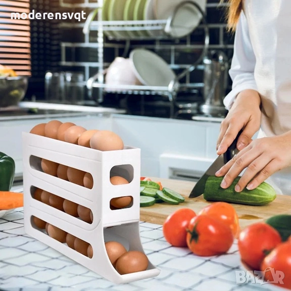 Открийте нов начин за съхранение на яйца с тази 4-слойна плъзгаща се поставка – иновативно решение, което съчетава функционалност, безопасност и стил. Създадена за съвременната кухня, тя осигурява оптимално използване на пространството и предпазва яйцата от повреди.