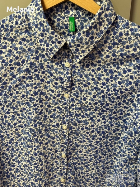 Benetton – Свеж десен със сини цветчета, 100% памук, леко втален модел. ПРОДАДЕНА!