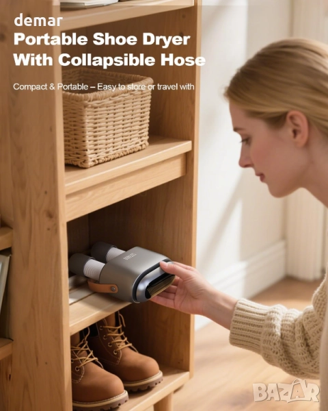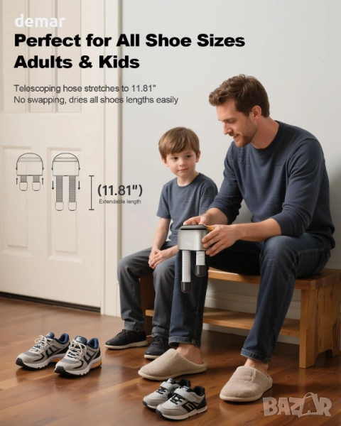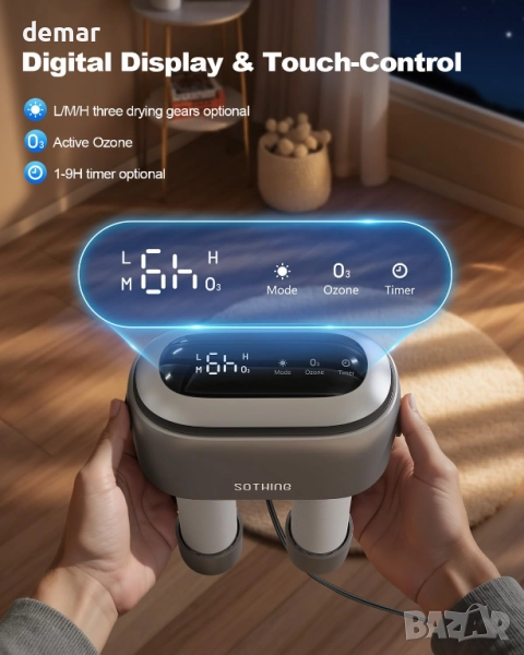 Тази сушилня за обувки с мощност 95 W ефикасно се справя с всичко - от маратонки до ски обувки, предлагайки три регулируеми нива на топлина за персонализирано сушене. Тя разполага с функция за озониране, която помага за намаляване на миризмите и поддържане на обувките свежи, а LED сензорният панел с таймер от 1 до 9 часа позволява лесен и прецизен контрол. Изградена с тройна защита за безопасност - включително топлоустойчив корпус, PTC контрол и термичен предпазител - тя осигурява безопасна и надеждна работа за всички видове обувки.