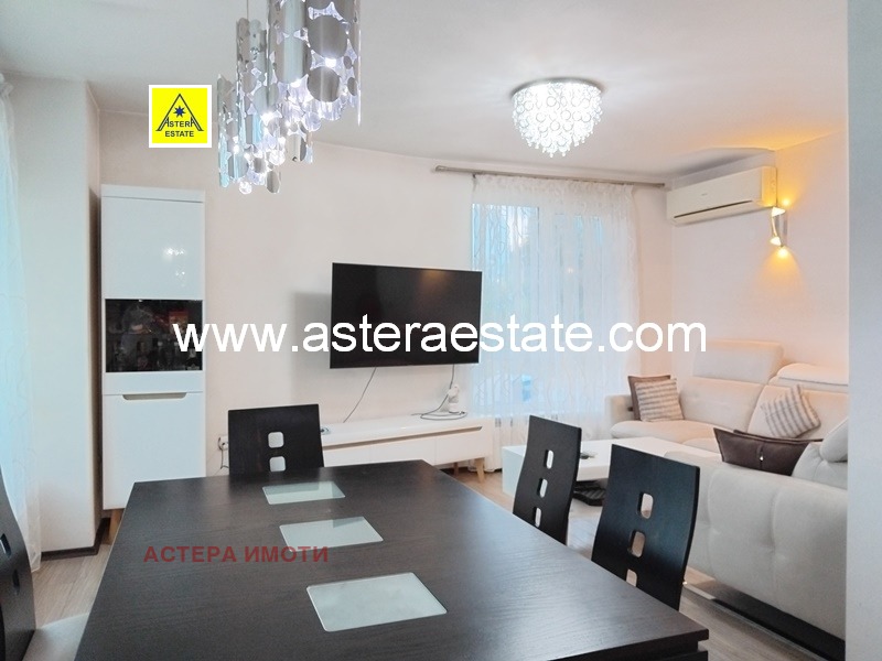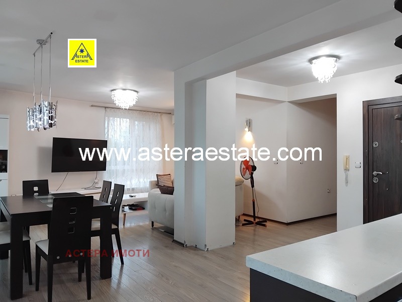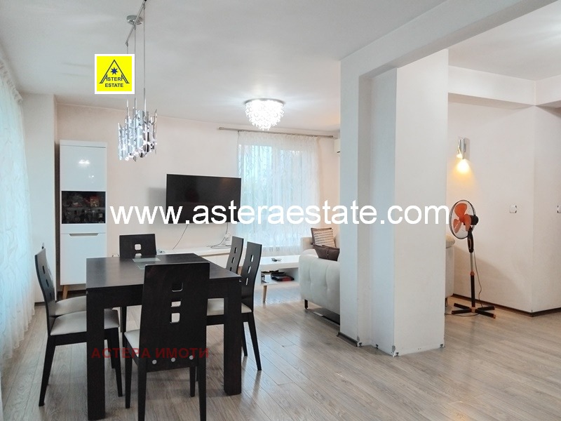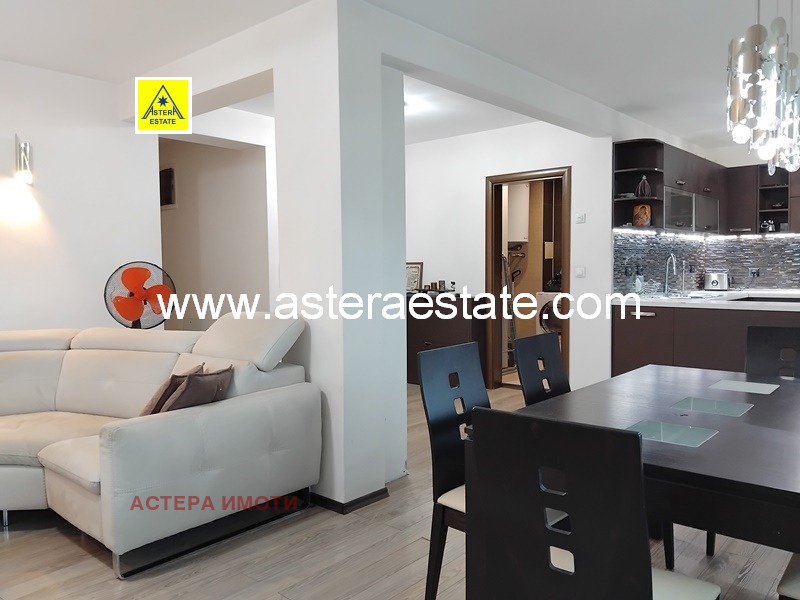 Астера Имоти предлага Модерно обзаведен апартамент, 125 кв.м., на 3-ти етаж, с гараж, 20 кв.м., за продажба, находящ се в кв. Баларбаши на Благоевград. Намира се на тиха и спокойна улица, на 5 мин. пеша от Американския университет, Театъра, Община Благоевград. Апартаментът се състои от: просторна дневна с кухня и трапезария, 3 спални помещения, коридор, 2 бани с тоалетни, 2 тераси, гараж с електрическа ролетна щора в приземния етаж на сградата. Апартаментът е в отлично състояние, продава се обзаведен и оборудван с висококачествени мебели и ел. уреди съответно. Намира се в следното състяние: под: плочки в кухненския бокс и на терасите, ламинат във всички стаи и коридора, стени и таван шпакловани и боядисани.