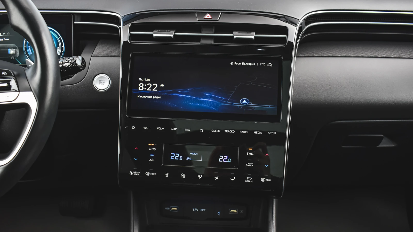 Автосвят ООД - официален представител на Opel и Mazda, предлага на Вашето внимание проверен автомобил Hyundai Tucson 1. 6 T-GDi PREMIUM Plug-in Hybrid 4x4 Automatic Предимства: - 12 месеца или 20 000 км пробег гаранция; - безплатна пътна помощ за Р България в рамките на гаранцията; - напълно обслужен. Допълнителни услуги: - лизинг; - сътрудничество при регистрация; - възможност за обратно изкупуване; - посредничество при застраховане; - посредничество при завеждане на щети при застрахователя. Пробег с едно зареждане на батерията 62 км. (WLTP) Брутен капацитет на батерията 13. 8 kWh Външен цвят Amazon Grey металик ABS (Anti-block System): Антиблокираща система на спирачките ESP (Electronic Stability System): Eлектронна система за динамичен контрол на траекторията DBC (Downhill Brake Control): Система за контрол при спускане HAC (Hillstart Assist Control): Система за контрол при потегляне по наклон TSA (Trailer Stability Assist): Система за стабилизиране при теглене EPB (Electronic Park Brake): Електрическа паркинг спирачка + Autohold MCB (Multi Collision Braking): Система за предотвратяване на вторичен сблъсък BAS (Brake Assis System): Електронна асистенция на спирачното усилие при екстремно спиране VSM (Vehicle Stability Management): Система за контрол на стабилността ESS (Emergency Stop Signal): Автоматично включване на аварийните светлини при внезапно спиране TPMS (Tire Pressure Monitoring System): Система за активно следене налягането на гумите FCA-JX (Front Collision Assist-Junction): Автономна аварийна спирачка с разпознаване на пешеходци/автомобили/велосипедисти и превенция на сблъсък в кръстовище LKA (Lane Keep Assist): Система за поддържане на пътната лента LFA (Lane Following Assist): Система за активно поддържане на пътната лента LVDA (Leading Vehicle Departure Alert): Система за предупреждение при тръгване на автомобила отпред DAW (Driver Attention Warning): Система за разпознаване на умора при водача HBA (High Beam Assist): Система за автоматично превключване между къси и дълги светлини BCA (Blind Spot Collision Avoidance System): Система за следене на мъртвата точка с фукция за превенция на сблъсък RCCA (Rear Cross Collision Warning): Система за следене на трафика зад автомобила с функция за превенция на сблъсък HDA (Highway Driving Assist): Система за автономно шофиране по магистрали ROA (Rear Occupant Alert): Система за предупреждение със звуков и светлинен сигнал при наличие на пътници на 2-ри ред седалки SEA (Safe Exit Asist): Система за следене за наближаващ автомобил и автоматично заключване на задните седалки Две фронтални въздушни възглавници за предните места Странични въздушни възглавници за защита на тялото за предните места Въздушни възглавници тип завеса за защита на главите за предните и задните места Предна централна въздушна възглавница за предните места Триточкови и инерционни предни и задни предпазни колани Регулируеми по височина предни предпазни колани Система ISOFIX за триточково закрепване на детска седалка за страничните места на задната седалка Усилващи греди от високоякостна стомана във вратите за защита при страничен удар MDPS: Сервоусилвател на волана с електронно управлeние Drive Mode Select: Система за промяна режима на шофиране ASCC (Adaptive Smart Cruise Control): Система за поддържане на зададена скорост и дистанция спрямо автомобила отпред и Stop & Go функция ISLA (Intelligent Speed Limit Assist): Система за автоматично регулиране на зададена скорост чрез разпознаване на пътните знаци ECS (Electronically Controlled suspension): Електроуправляемо адаптивно окачване SBW (Shift By Wire): Превключване на скортната кутия чрез бутони Пера за управление на скоростната кутия от волана Дигитално табло Sup