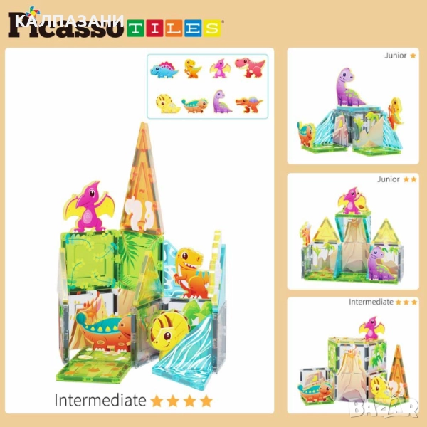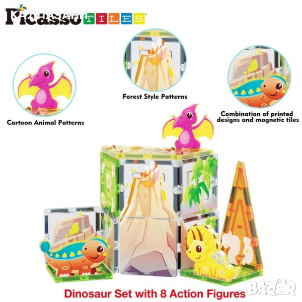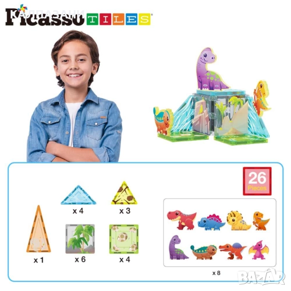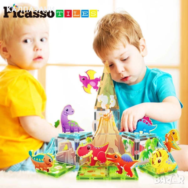 С динозавърския Джурасик свят на PicassoTiles ще се насладиш на създаването на вълнуващи праисторически приключения, докато сглобяваш шедьоври от магнитни плочки!