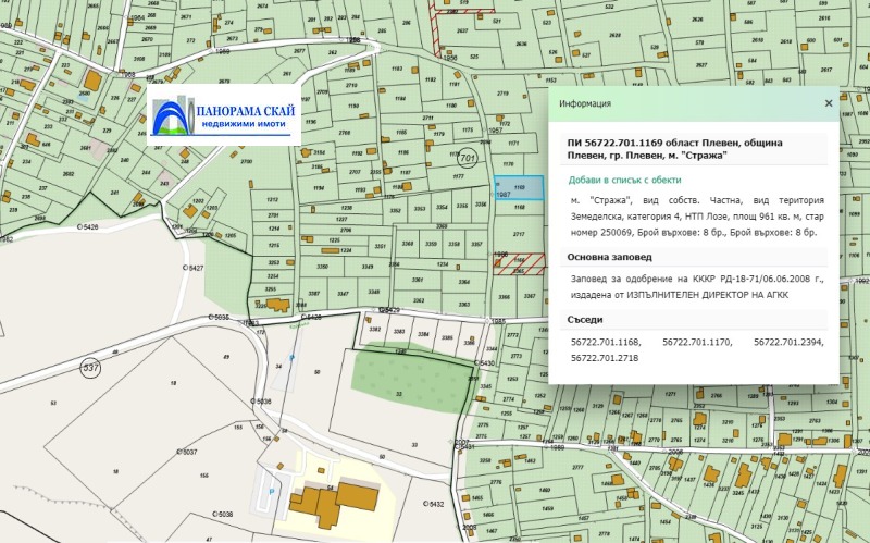 Продава ПАРЦЕЛ, гр. Плевен, м-т Стражата → Обява 52090635