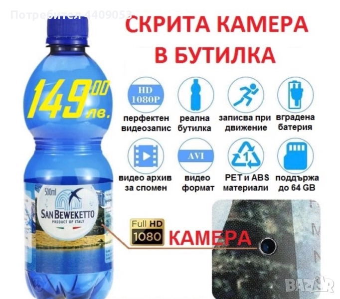 Камерата НЕ Е водоустойчива и трябва да се предпазва от пряк контакт с течности!