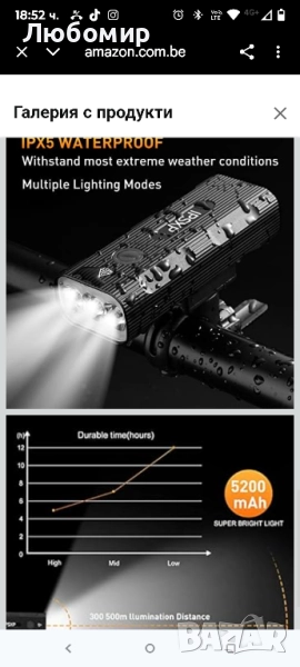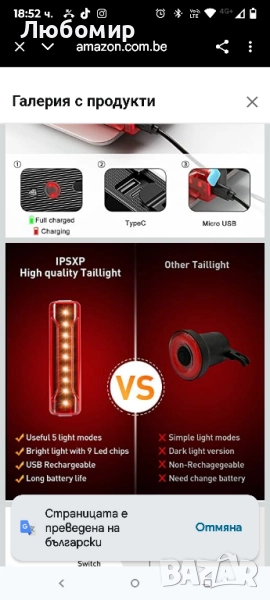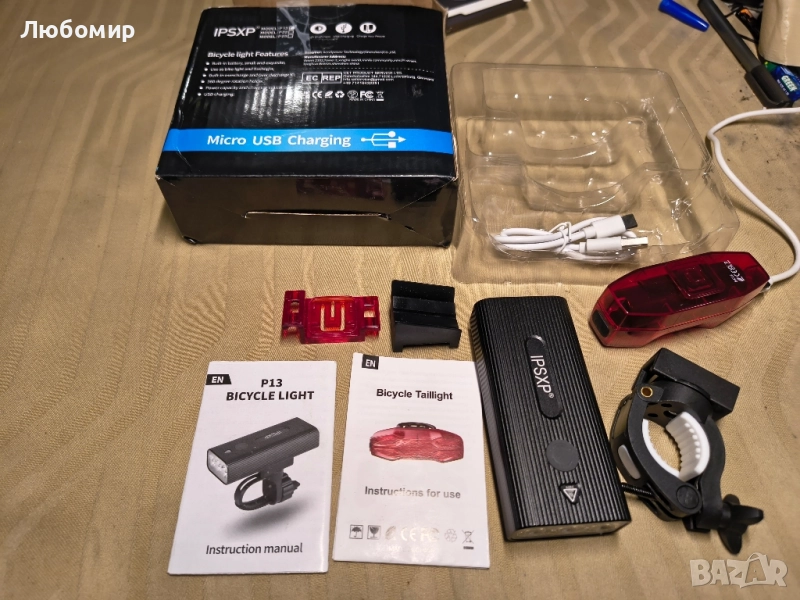 IPSXP Комплект за презареждащи се USB велосипедни светлини, предна LED велосипедна