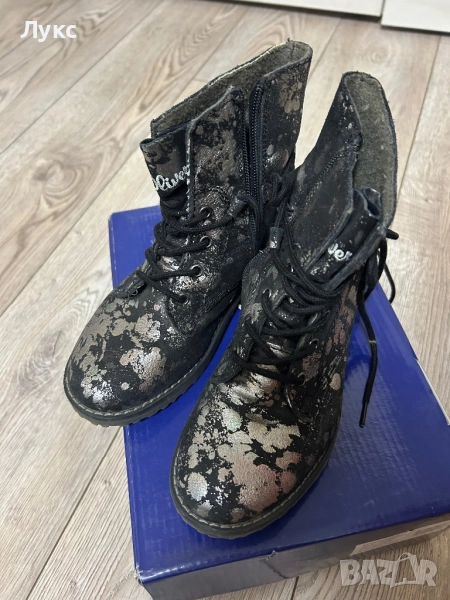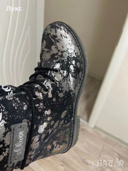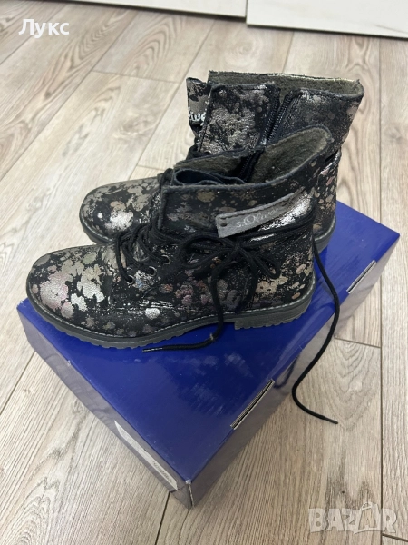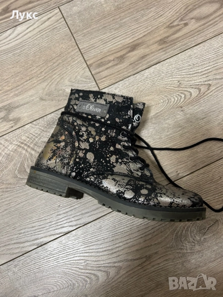 Боти на марката S’Oliver.Черна основа от естествена кожа с преливащи се златисти капки.Носени са няколко пъти !По етикет 35,но стават и за 36 номер.Удобни,топли и стилни!