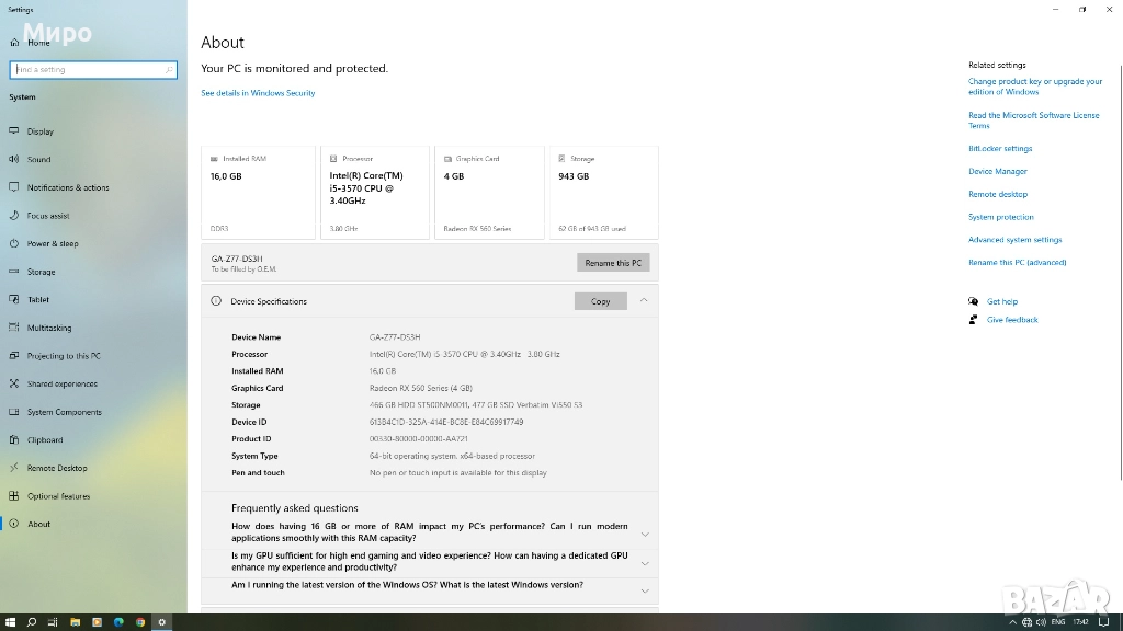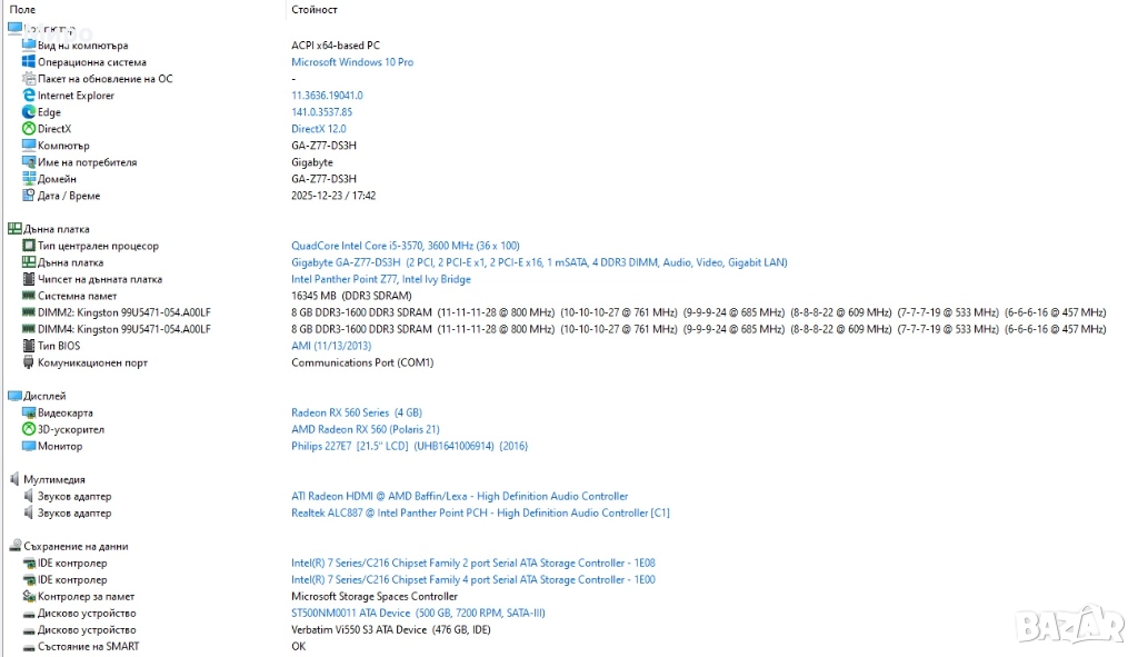 Компютър I5, Z77,16 Gb, 1Tb, RX560-Може и на части