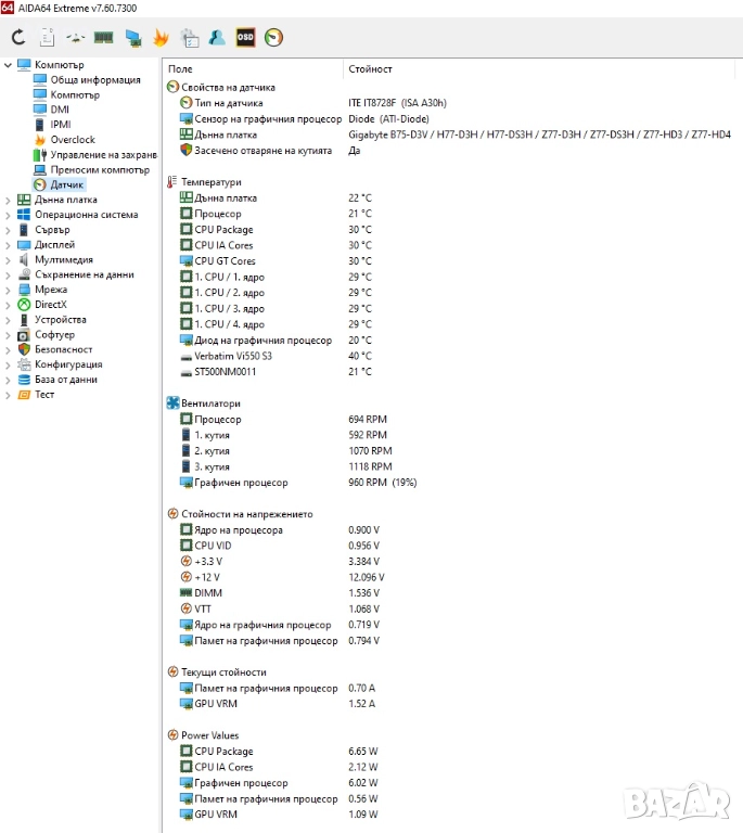 1. Дънна платка - Gigabyte GA-Z77-DS3H s. 1155, Intel Z77 Express Chipset, 4 x 1.5V DDR3, 1 x VGA/DVI-D/HDMI port, 7.1 Audio Support for S/PDIF Out, 2 x SATA 3, 3 x SATA 2, 1 x mSATA connector