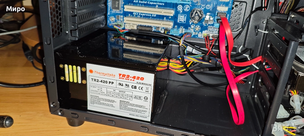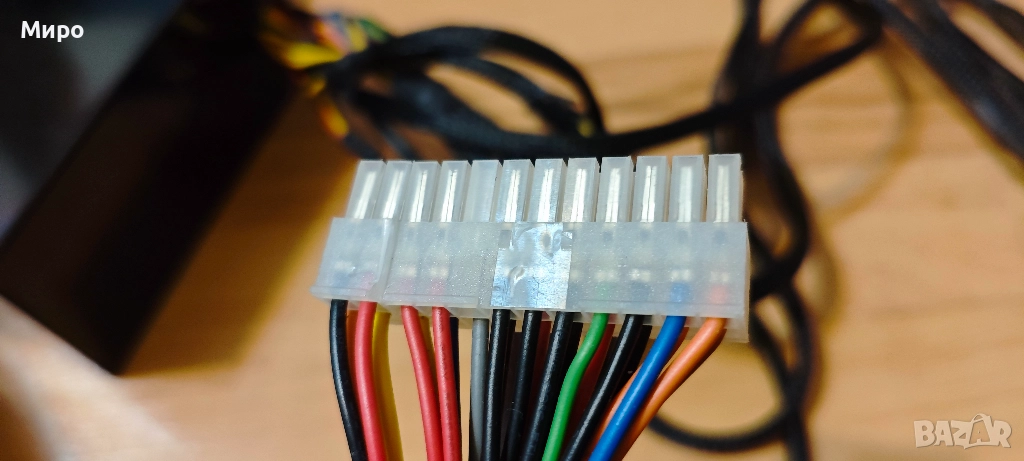 Захранването е със счупена закопчала на 24-пиновият конектор към дъното при демонтажа му от другата система, но буксата се монтира и фиксира без проблем. Вижда се на една от снимките.