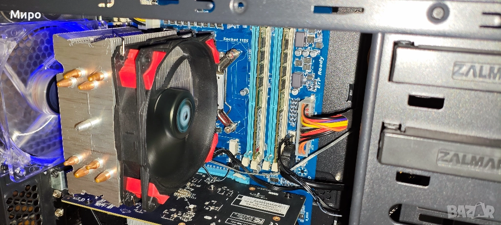 Системата е конфигурирана с една от най-високият клас дънна платки с поддръжка на всичко процесори от 2-3-то поколение, монтиран е 4-ядрен процесор, ъпгрейдвана е с 16 Gb памет, има SSD за бързо зареждане на Windows и инсталиране на приложения и хард диска 500 GB за вашата информация. Разполагам и с други хард дискове в друга моя обява. Минимални козметични забележки по кутията.
