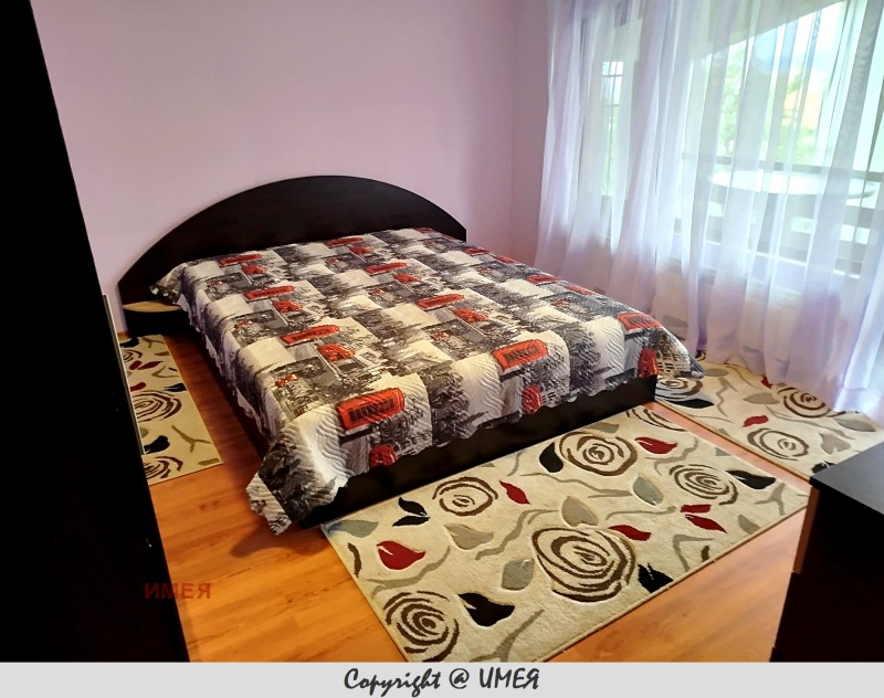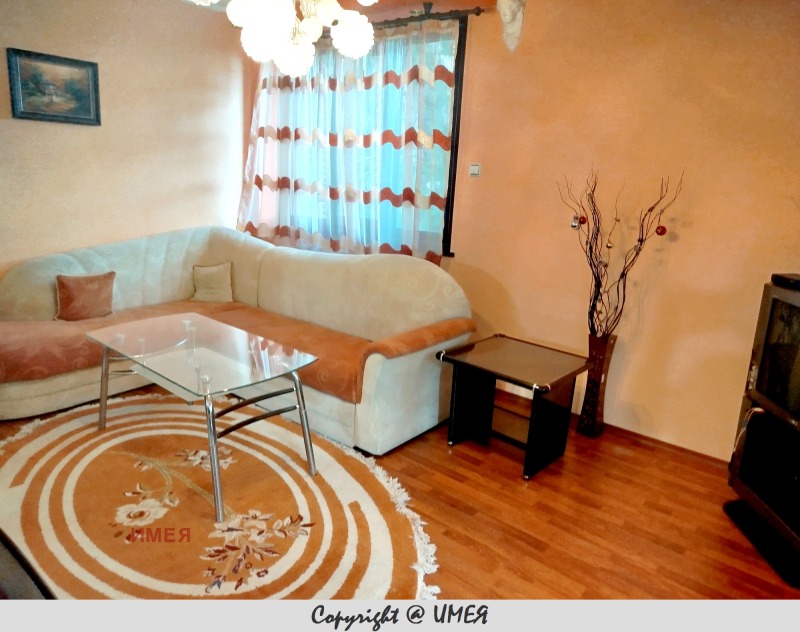 Агенция 'ИМЕЯ' дава под наем чудесна самостоятелна 2-етажна къща с гараж! Намира се в близост до центъра на кв. 'Симеоново'. Представлява 2 етажа х 70 кв.м. в двор от 500 кв.м. Функционално разпределение: първи етаж: антре, светъл кухненски бокс с трапезария, свързана с дневна, балкон и тоал. От антрето има стълби, водещи към втория етаж, където са разположени: антре, 3 отделни спални, баня, тоал. и балкон. В добро състояние. Напълно обзаведена. Камина. Гараж. Просторен двор. ИМЕЯ.