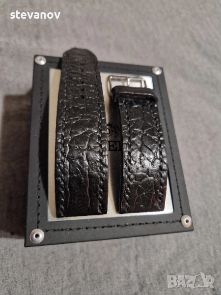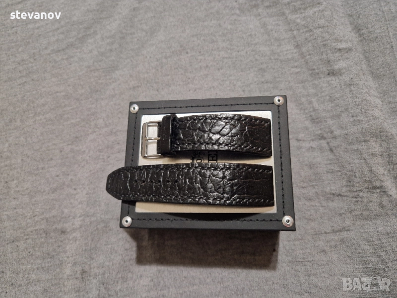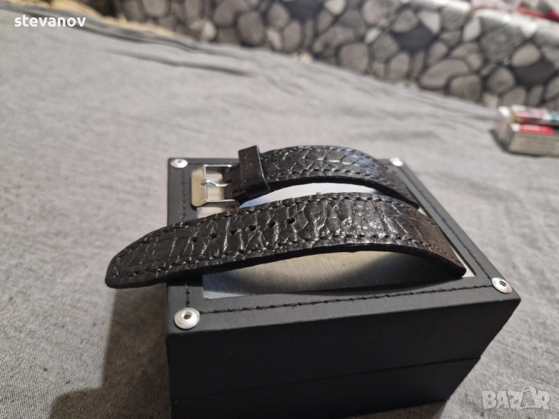 оргинална ръчна изработка уникална красива и стилна масивна здрава от естествена кожа алигатор каишката само е тествана монтирана във часовник за проба дефакто е нова размер 22мм цвят черна