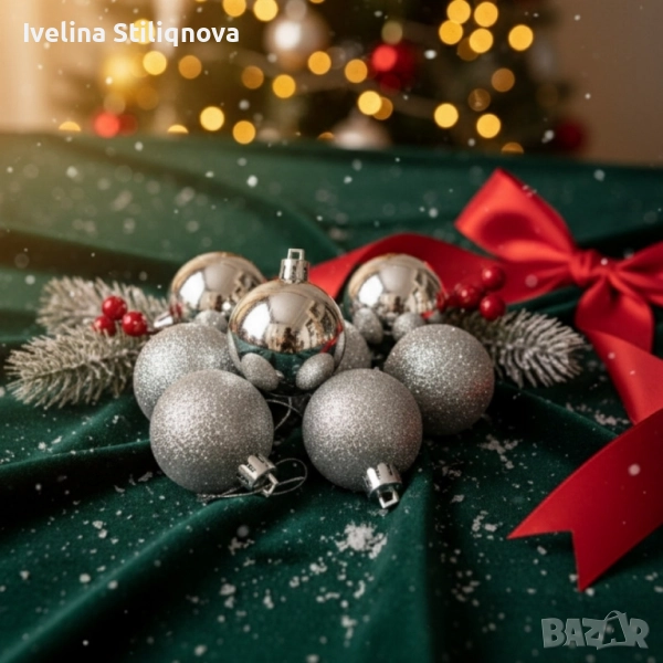 Комплект коледни топки 2 см – сребърни (8 бр.) и червени (16 бр.) → Обява 52091917