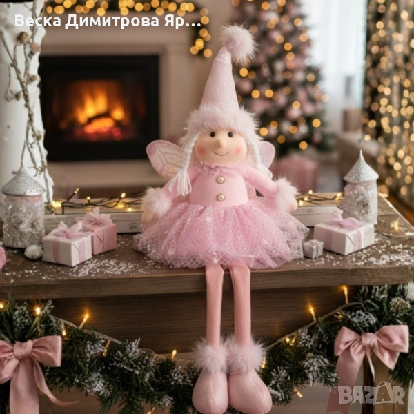 Тип продукт: Декоративна коледна кукла/фигура с дълги крака; Варианти: Розова фея; Сканди гном; Материали: текстил (плюш/филц/тюл), синтетичен пух; пълнеж – полиестерни влакна; Поставяне: седнала на рафт/комод/каминна полица или опряна до елха/стена; Поддръжка: деликатно разресване на пуха; почистване с мека леко влажна кърпа; не перѐте в пералня; Употреба: интериорна декорация; не е предназначена за деца под 3 г. без надзор.