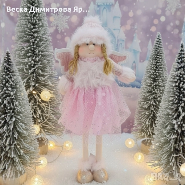 Декоративен текстилен коледен ангел в розово – 80 см → Обява 52091992