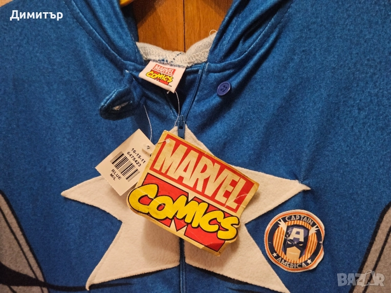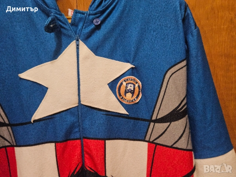 Здравейтр, продавам този нов костюм на капитан Америка. Перфектна маскировка за празници. Размери Дължина 165см. Подмишници 53см Ръкави 75см. Абсолютно оригинален екип на Marvel от 2014г.