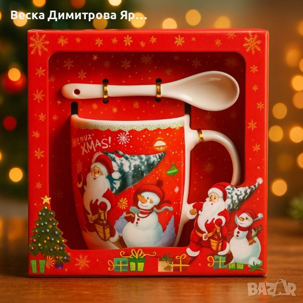 Коледна чаша с чинийка и лъжичка → Обява 52092028