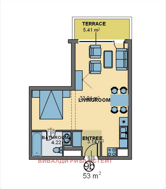 С обща площ от 62,04 кв.м, чиста площ 52,68 студиото има функционална планировка, която позволява лесно преустройство в двустаен апартамент.